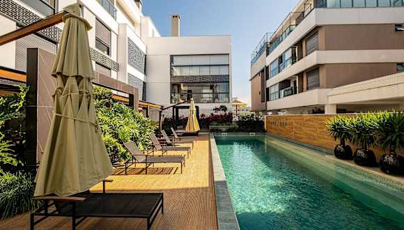 Das Studio alto padrão pé na areia em Floripa IRB205 bietet eine moderne Ferienwohnung mit einem Außenpool. Die Unterkunft zeichnet sich durch ihre strategisch günstige Lage in der Nähe des Strandes aus.