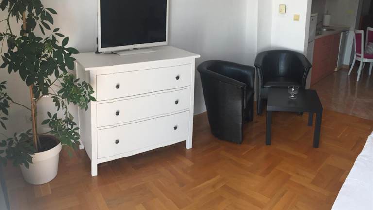 Das Studio apartman Lara *** verfügt über ein komfortables Schlafzimmer und zwei Badezimmer. Die Unterkunft bietet auch Bettwäsche und Handtücher sowie einen Flachbild-TV und einen Essbereich. Die voll ausgestattete Küche ermöglicht es den Gästen, ihre eigenen Mahlzeiten zuzubereiten, und der Balkon bietet einen schönen Blick auf die Stadt.