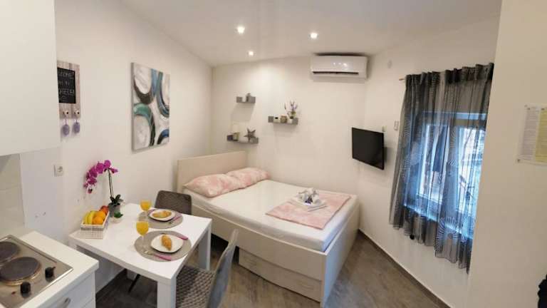 Studio apartman Megy bietet klimatisierte Unterbringungsmöglichkeiten mit einer Veranda oder einem Patio sowie kostenlosem WLAN. Die Unterkunft wird von einem privaten Gastgeber verwaltet und gestattet keine Junggesellen-/Junggesellinnenabschiede oder ähnliche Feiern. Es gelten Altersbeschränkungen für den Check-in und die Gäste, das Mindestalter liegt bei 18 Jahren. Haustiere sind nicht erlaubt.