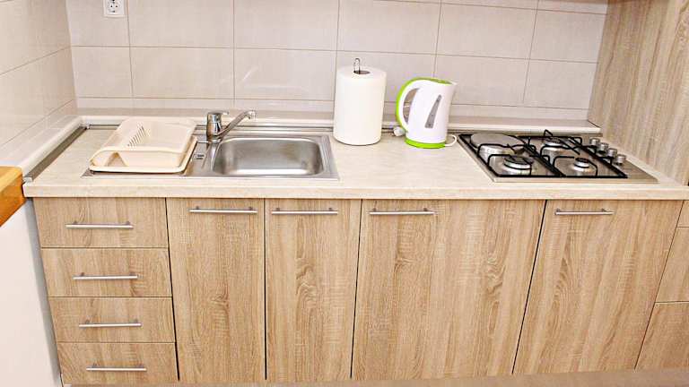 Die Ferienwohnung verfügt über 1 Schlafzimmer und ein Wohnzimmer, ausgestattet mit einem Flachbild-TV. Die gut ausgestattete Küche beinhaltet einen Kühlschrank und einen Geschirrspüler. Zum Badezimmer gehört eine Dusche. Handtücher und Bettwäsche sind ebenfalls vorhanden.