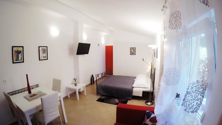 Das Studio Apartment Adriana bietet ein gemütliches Schlafzimmer mit modernem Flachbild-Sat-TV. Die voll ausgestattete Küche verfügt über alle notwendigen Geräte wie Kühlschrank, Backofen, Waschmaschine, Mikrowelle und Kochfeld. Handtücher und Bettwäsche werden im Apartment gestellt, so dass Sie sich um nichts kümmern müssen.