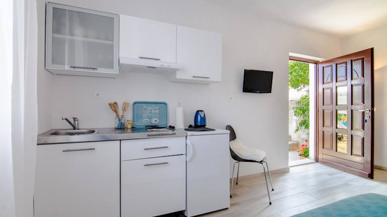 Das Studio Apartment Stella bietet klimatisierte Unterkünfte mit einem Schlafzimmer und einem Badezimmer. Das Apartment ist gut ausgestattet und verfügt über Bettwäsche, Handtücher, einen Flachbild-Sat-TV und einen Essbereich. Die voll ausgestattete Küchenzeile ermöglicht es den Gästen, ihre eigenen Mahlzeiten zuzubereiten. Außerdem gibt es eine Terrasse mit Blick auf den Garten, wo Sie sich entspannen und die Aussicht genießen können.