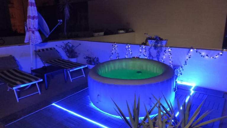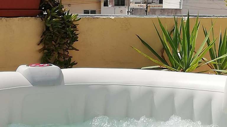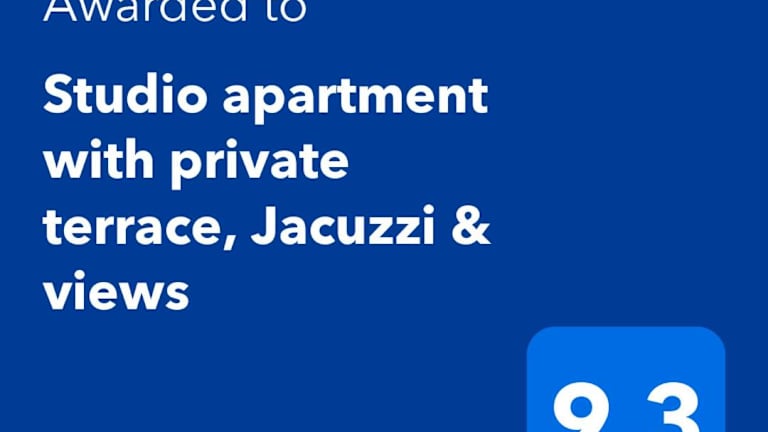 Das Studio apartment with private terrace, Jacuzzi & views bietet eine Unterkunft mit einem Garten, einer Terrasse, Grillmöglichkeiten und kostenlosem WLAN. Die Wohneinheit verfügt über eine private Terrasse sowie Zugang zu einem Balkon.