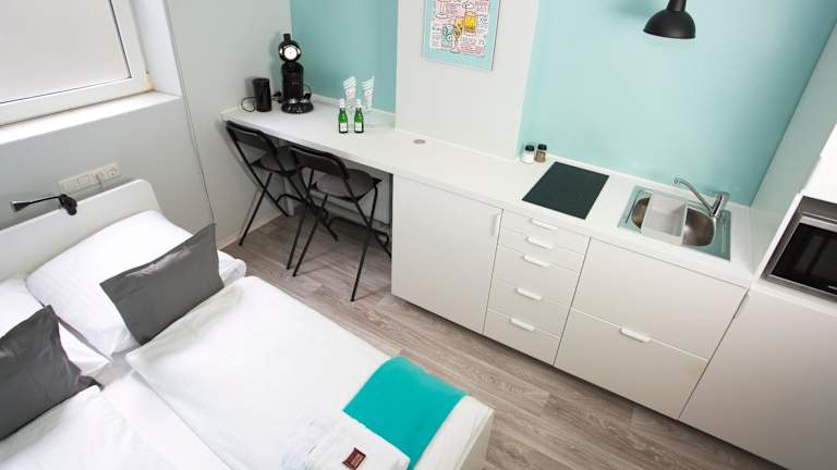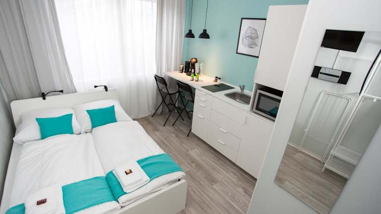 Das Studio Apartments nahe Messe bietet verschiedene Unterkunftsmöglichkeiten mit modernem Komfort. Kostenloses WLAN steht in der gesamten Anlage zur Verfügung.