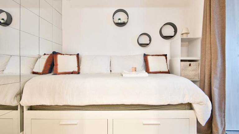 Das Studio besteht aus einem Schlafzimmer, einem Wohnzimmer und einer voll ausgestatteten Küchenzeile, die mit einem Kühlschrank und einer Kaffeemaschine ausgestattet ist. Es verfügt über ein Badezimmer mit Dusche und Haartrockner. Handtücher und Bettwäsche werden zur Verfügung gestellt.