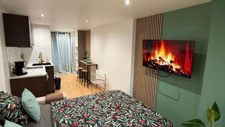 Die Ferienwohnung ist im Erdgeschoss gelegen und verfügt über ein Schlafzimmer sowie eine voll ausgestattete Küchenzeile, die mit einem Kühlschrank und einem Ofen ausgestattet ist. Zu weiteren Annehmlichkeiten zählen ein Flachbild-TV sowie die Bereitstellung von Handtüchern und Bettwäsche. WLAN ist in der gesamten Unterkunft kostenlos verfügbar. Eine Terrasse mit Gartenblick ist ebenfalls vorhanden.