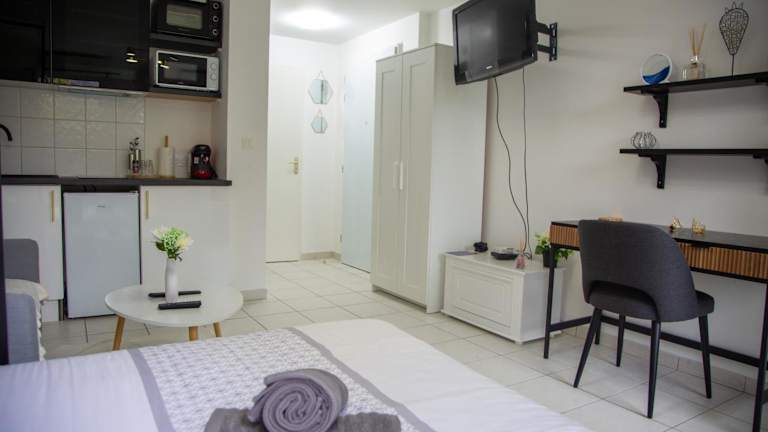 Das Studio chic Nantes, calme assuré bietet eine ruhige Atmosphäre mit einem Balkon und einem Garten. Kostenloses WLAN ist ebenfalls verfügbar. Die Unterkunft wird von einem privaten Gastgeber geführt und in der gesamten Unterkunft gelten Nichtraucherregeln. Es gibt einen privaten Parkplatz.