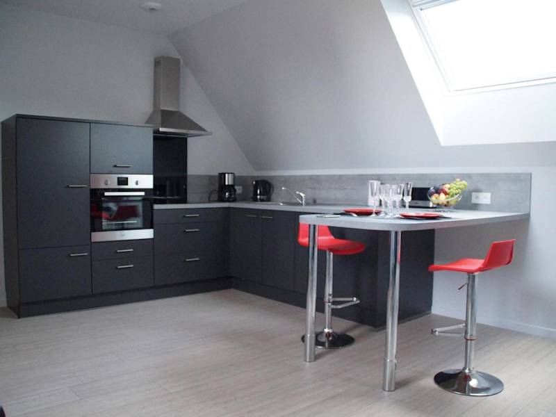 Die Unterkunft bietet eine gut ausgestattete Küche mit einem Kühlschrank und einem Geschirrspüler, die den Gästen die Möglichkeit gibt, eigene Mahlzeiten zuzubereiten. Es sind keine weiteren Verpflegungsmöglichkeiten beschrieben.
