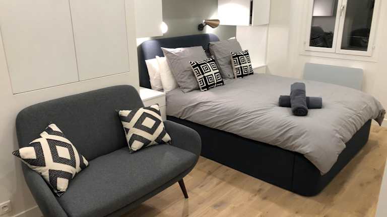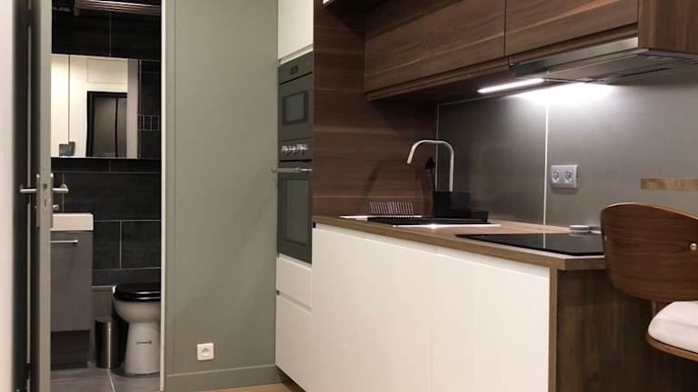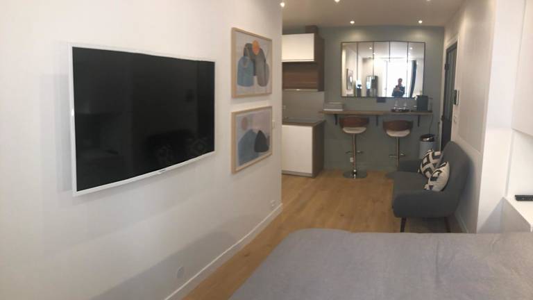 Das Studio design proche Champs-Elysées verfügt über ein komfortables Schlafzimmer mit modernem Flachbild-Kabel-TV. Die Küche ist komplett ausgestattet mit einem Kühlschrank, einer Mikrowelle und allen notwendigen Utensilien, um Ihre eigenen Mahlzeiten zuzubereiten. Eine Waschmaschine steht Ihnen ebenfalls zur Verfügung. Das Badezimmer ist mit einer Dusche ausgestattet und Handtücher und Bettwäsche werden gestellt, um Ihren Aufenthalt angenehm zu gestalten.