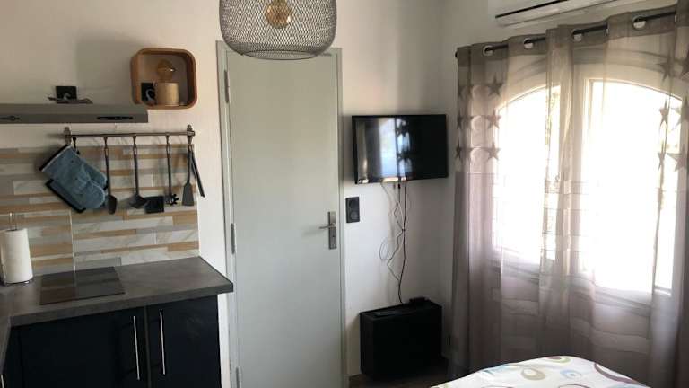 Das Studio EL PARAISO Roquebrune sur Argens ist eine klimatisierte Unterkunft mit moderner Ausstattung. Das Apartment verfügt über einen Flachbild-TV und eine gut ausgestattete Küche mit Kühlschrank, Mikrowelle, Toaster, Kaffeemaschine und Wasserkocher. Die Unterkunft bietet einen Grill, so dass Sie im Freien köstliche Mahlzeiten zubereiten können.