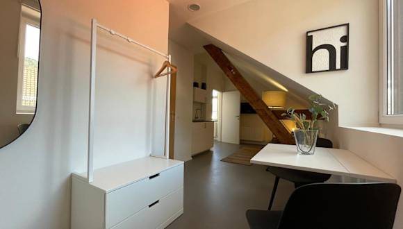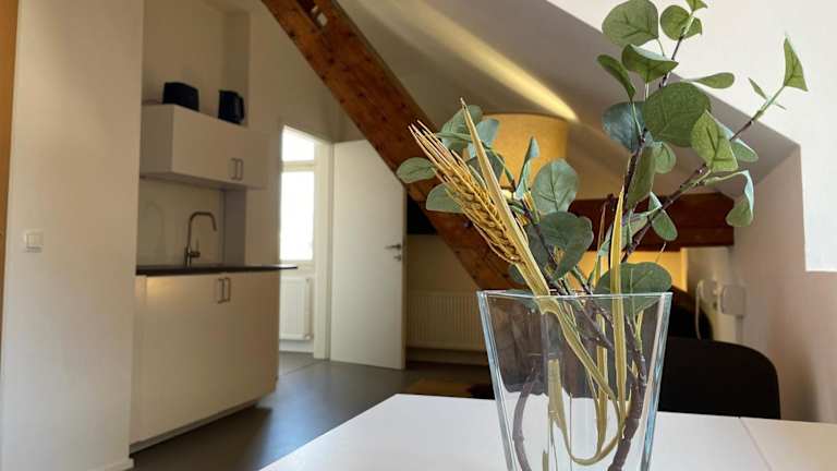 Das Studio im Zentrum von Lochau, #3 bietet eine komfortable Ferienwohnung, die mit einem Wohnzimmer und einer voll ausgestatteten Küche ausgestattet ist.