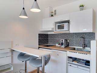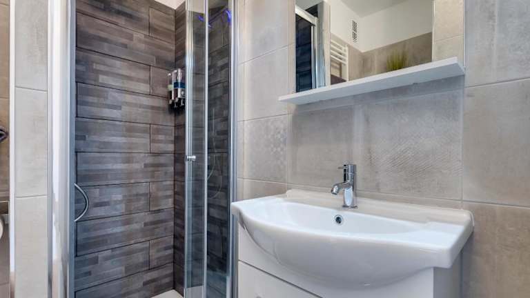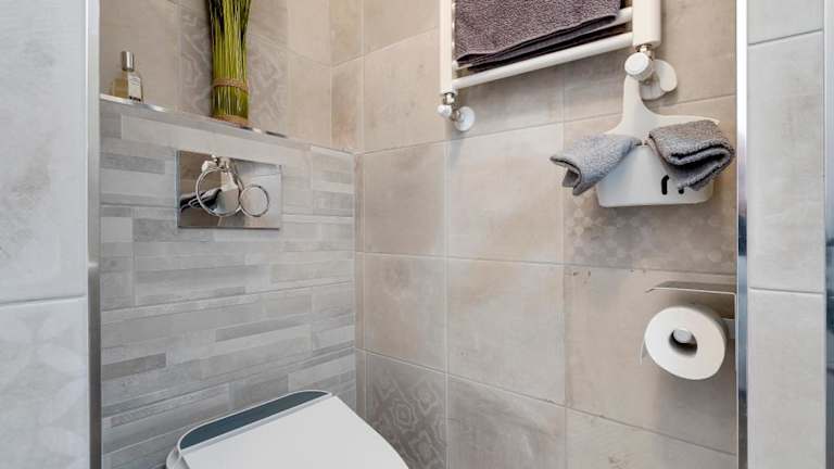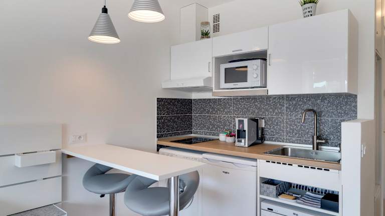 Die Ferienwohnung verfügt über ein Schlafzimmer, ein Wohnzimmer sowie eine voll ausgestattete Küche mit Kühlschrank und Kaffeemaschine. Das Badezimmer ist mit einem Bidet und einer Dusche ausgestattet. Außerdem werden Handtücher und Bettwäsche bereitgestellt.