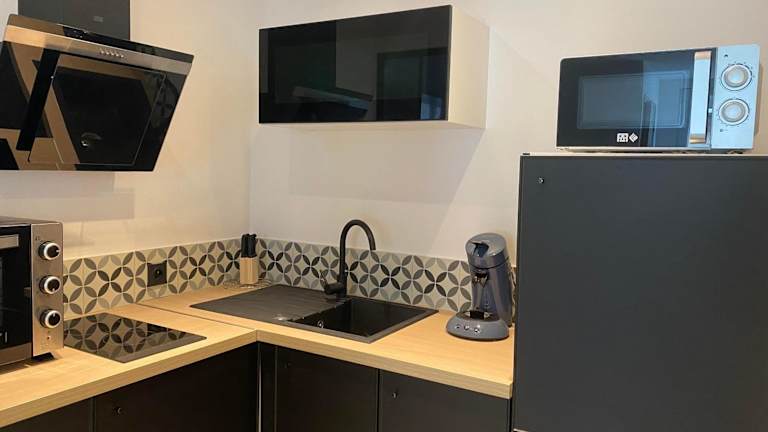 In diesem Studio können Sie Ihre Mahlzeiten bequem selbst zubereiten, da es über eine voll ausgestattete Küche verfügt. Alternativ können Sie auch die nahe gelegenen Restaurants erkunden und die lokale Küche genießen.