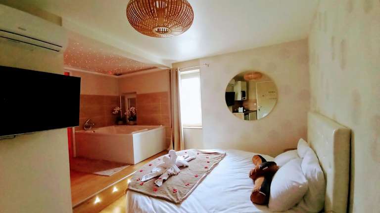Studio Love room Spa Baignoire double La Ciotat Centre port bietet kostenloses WLAN und Zugriff auf einen Whirlpool. Die Unterkunft ist modern ausgestattet und bietet eine angenehme Atmosphäre.