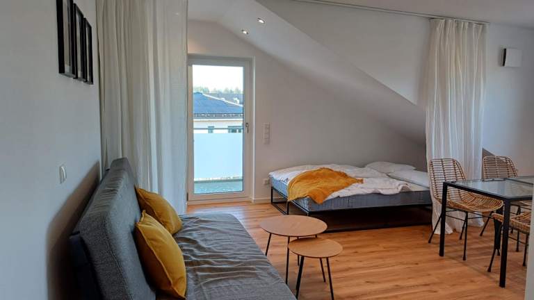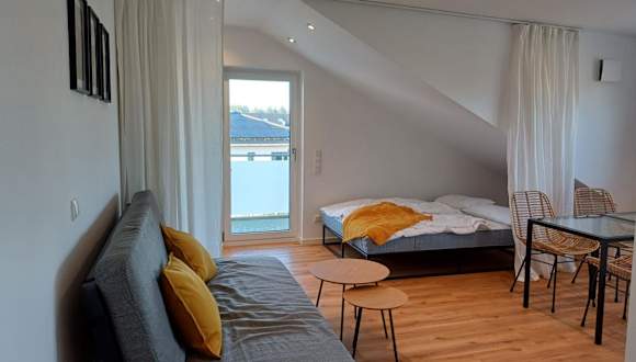 Das Studio befindet sich in Kaufering, in einer naturnahen Umgebung mit Gartenblick. Die Lage ist gut angebunden, 32 km von der Messe Augsburg und 35 km vom Hauptbahnhof Augsburg entfernt. Der nächstgelegene Flughafen, der Flughafen Memmingen, ist 53 km entfernt.