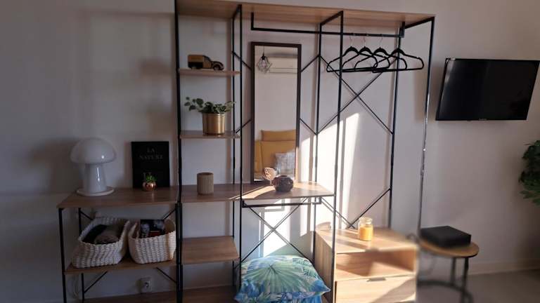 Das Studio Nimes bietet eine moderne und gut ausgestattete Ferienwohnung mit Annehmlichkeiten wie Klimaanlage, kostenlosem WLAN und privatem Parkplatz. Die Gestaltung der Unterkunft schließt einen Balkon und eine Kaffeemaschine ein, und es gibt eine gemeinsame Badewanne, die für die Gäste zugänglich ist. Die Unterkunft richtet sich besonders an Nicht-Raucher und hat klare Regeln bezüglich Feiern.