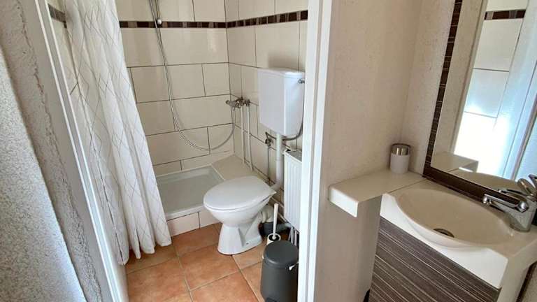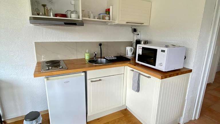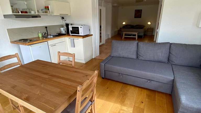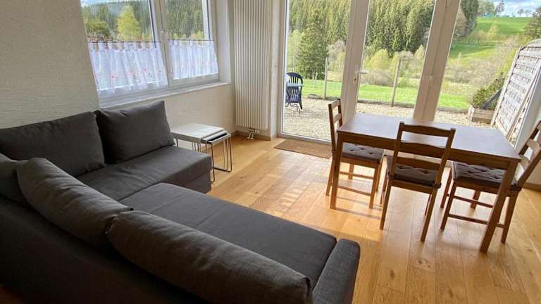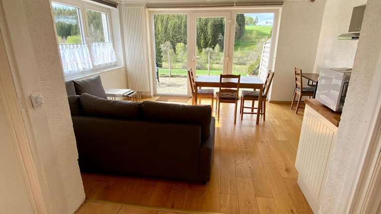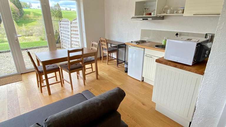 Die Ferienwohnung besteht aus 1 Schlafzimmer, einem Wohnzimmer und einer voll ausgestatteten Küchenzeile mit Kühlschrank und Kaffeemaschine. Des Weiteren umfasst die Ausstattung 1 Badezimmer mit Badewanne oder Dusche. Es werden Handtücher und Bettwäsche bereitgestellt. Eine Terrasse ist ebenfalls verfügbar.