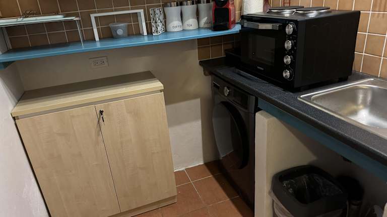 Die Unterkunft ist mit einer Küche ausgestattet, die über einen Kühlschrank, einen Ofen und eine Mikrowelle verfügt. Es sind keine spezifischen Informationen zu Verpflegungsmöglichkeiten vorhanden.