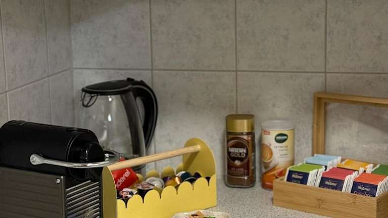 Die Ferienwohnung verfügt über ein Schlafzimmer, eine Küche mit Kühlschrank und Ofen, ein Badezimmer mit Dusche sowie einen Flachbild-TV. Ein Sitzbereich ist ebenfalls vorhanden, und es werden Handtücher und Bettwäsche bereitgestellt. Die Unterkunft bietet Nichtraucherzimmer und Familienzimmer.