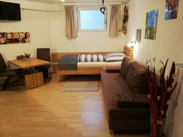 Die Ferienwohnung verfügt über ein Schlafzimmer, einen Flachbild-TV mit Satellitenkanälen, eine gut ausgestattete Küche mit Kühlschrank und Ofen sowie ein Badezimmer mit Dusche. Handtücher und Bettwäsche werden bereitgestellt, und es gibt eine Terrasse.