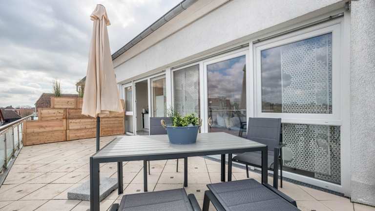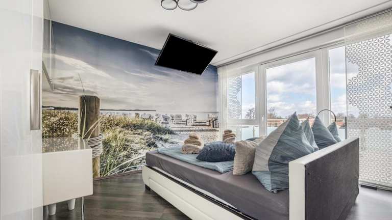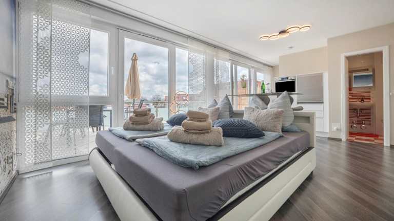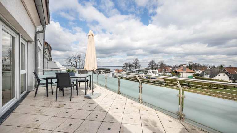 Die Ferienwohnung verfügt über ein Schlafzimmer und ein Badezimmer. Die Ausstattung umfasst Bettwäsche, Handtücher, einen TV mit Kabelkanälen, eine voll ausgestattete Küche und einen Balkon mit Seeblick. Weitere Annehmlichkeiten sind Heizung, WLAN in allen Bereichen sowie Gartenmöbel.
