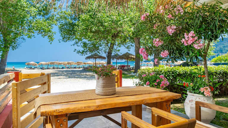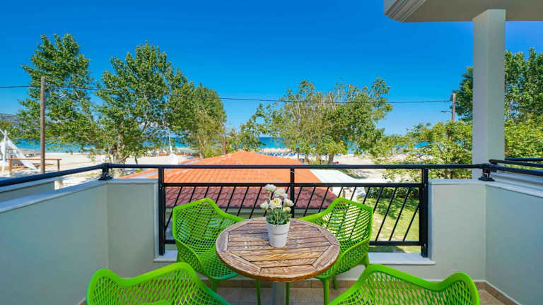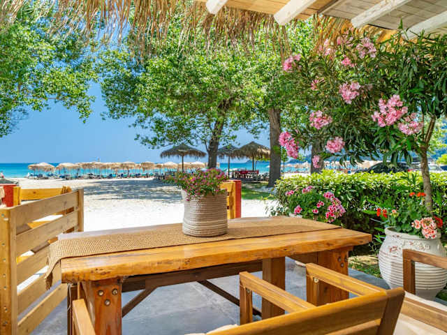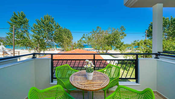 Die Unterkunft befindet sich in Skala Potamias direkt am Strand, nur 10 Meter vom Golden Beach entfernt. In der Nähe der Unterkunft sind mehrere Sehenswürdigkeiten, darunter das Museum Polygnotou Vagi (2,8 km), das traditionelle Dorf Panagia (4,9 km) und die Agios Ioannis Kirche (11 km). Der Hafen von Thassos ist 12 km entfernt, während der nächstgelegene Flughafen Kavala 34 km entfernt liegt.