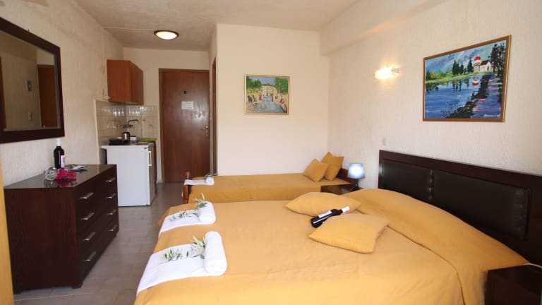 Die Unterkunft verfügt über 12 Zimmer, die modern und komfortabel eingerichtet sind. Zur Ausstattung gehören eine Klimaanlage, ein Balkon, ein Sofabett, ein Safe, ein Schreibtisch, eine Kochnische mit Kühlschrank und Tee-/Kaffeemaschine, ein Telefon, Sat-TV und kostenfreies WLAN. Die Badezimmer sind mit einer Dusche oder Badewanne, einem Haartrockner und Kosmetikartikeln ausgestattet.