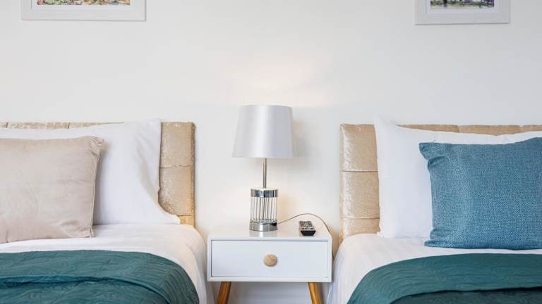 Die Ferienwohnung umfasst zwei Schlafzimmer, ein Wohnzimmer sowie eine voll ausgestattete Küche mit Kühlschrank und Kaffeemaschine. Sie bietet ein Badezimmer mit Dusche und kostenlosen Pflegeprodukten. Handtücher und Bettwäsche sind ebenfalls vorhanden.