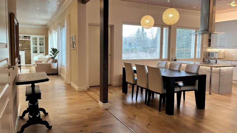 Das Stunning 5BR 16 Bed Home with Finnish Sauna & Jacuzzi 340 m2 in Tampere ist eine beeindruckende Villa, die Ihnen einen komfortablen und luxuriösen Aufenthalt bietet. Mit einer Vielzahl von Annehmlichkeiten, darunter eine Sauna, ein Whirlpool und eine voll ausgestattete Küche, können Sie Ihren Urlaub in vollen Zügen genießen. Die günstige Lage ermöglicht es Ihnen, nahegelegene Sehenswürdigkeiten wie den Aussichtsturm Nasinneula und den Erlebnispark Särkänniemi schnell zu erreichen.