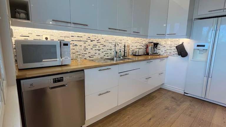 Das Stunning 5BR 16 Bed Home with Finnish Sauna & Jacuzzi 340 m2 verfügt über eine voll ausgestattete Küche, in der Sie Ihre eigenen Mahlzeiten zubereiten können. Alternativ können Sie auch den Grill im Garten nutzen, um ein köstliches Barbecue zu genießen. In der näheren Umgebung finden Sie auch verschiedene Restaurants und Cafés, in denen Sie lokale Spezialitäten probieren können.