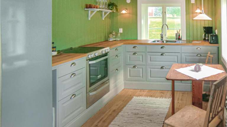 Das Ferienhaus verfügt über zwei Schlafzimmer und ein Wohnzimmer. Die Küche ist vollständig ausgestattet.