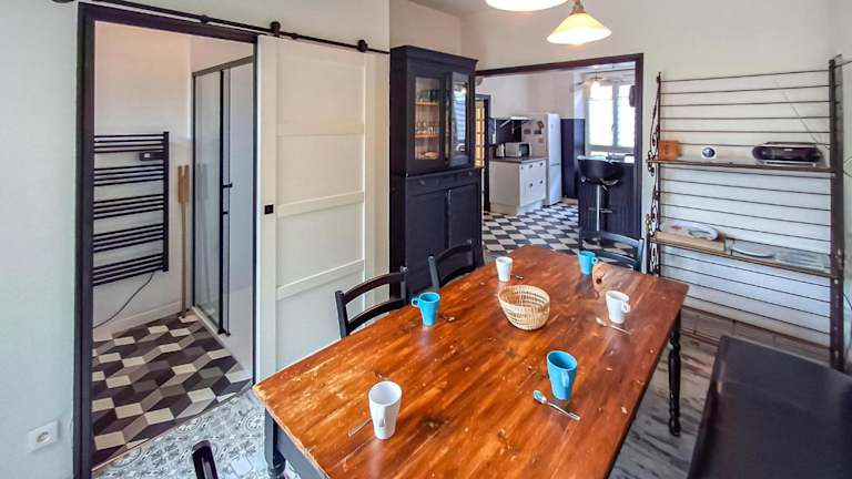 Das Ferienhaus bietet 4 Schlafzimmer, ein Wohnzimmer und eine voll ausgestattete Küche mit Kühlschrank sowie Kaffeemaschine. Es gibt zudem 2 Badezimmer mit Dusche und Haartrockner. Ein Fernseher ist ebenfalls vorhanden.