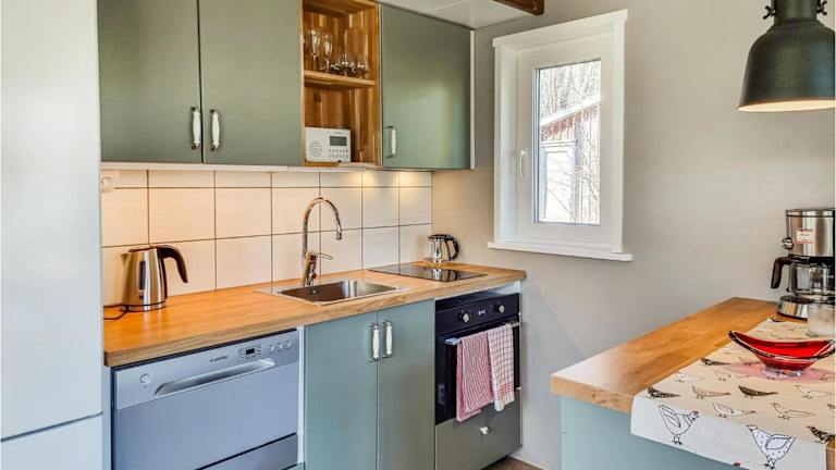 Das Ferienhaus bietet eine voll ausgestattete Küche mit Kühlschrank und Geschirrspüler, so dass Sie Ihre eigenen Mahlzeiten zubereiten können. Es gibt jedoch auch Restaurants in der Umgebung, die für eine Vielzahl von kulinarischen Geschmäckern geeignet sind.