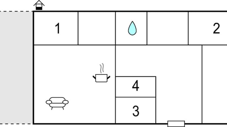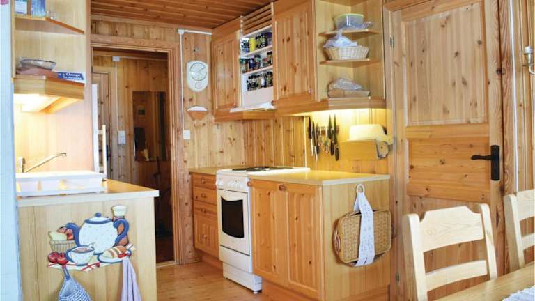 Das Ferienhaus umfasst eine voll ausgestattete Küche mit Kühlschrank, sodass die Gäste die Möglichkeit haben, selbst zu kochen. Keine weiteren Details zu Verpflegungsmöglichkeiten verfügbar.
