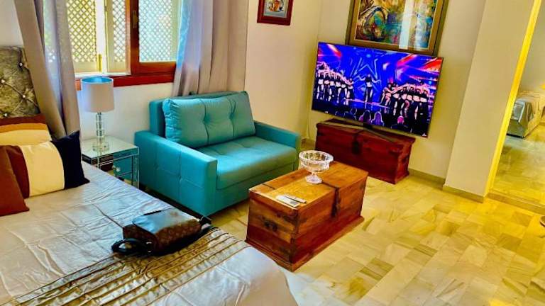Die Unterkunft Stunning suite at Hotel Del Golf bietet gehobene Annehmlichkeiten in einem stilvollen Ambiente und ist umgeben von einem Garten und einer Terrasse. Das Hotel ist ein Nichtraucherbetrieb und besticht durch einen Privatparkplatz und kostenfreies WLAN.