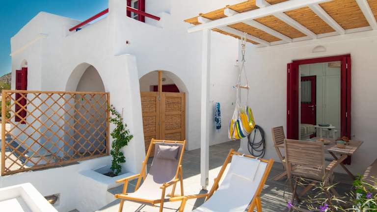 Die Unterkunft liegt in Kamarai in der Region Kykladen, unweit des Strandes Kamares, was eine angenehme Nähe zum Meer bietet. Der nächste Flughafen, Milos, ist 46 km entfernt.