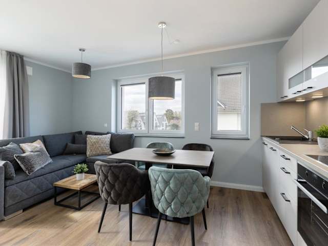 Die Ferienwohnung verfügt über ein Schlafzimmer, ein Wohnzimmer sowie eine gut ausgestattete Küche, die mit einem Kühlschrank und einem Geschirrspüler ausgestattet ist. Handtücher und Bettwäsche werden zur Verfügung gestellt.