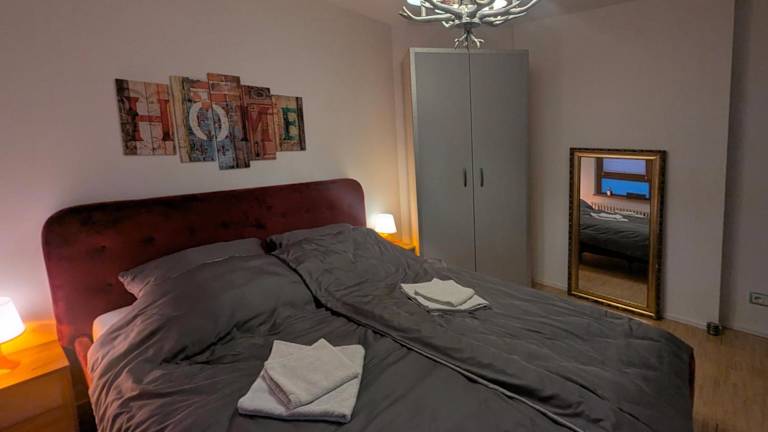 Die Ferienwohnung besteht aus einem Schlafzimmer und bietet einen Flachbild-TV mit Satellitenkanälen. Des Weiteren verfügt sie über eine gut ausgestattete Küche mit Kuhlschrank und Ofen sowie ein Badezimmer mit Dusche. Handtücher und Bettwäsche sind vorhanden.