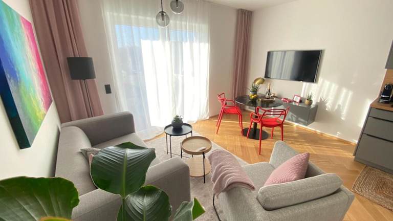 Die Stylische Wohnung mit Balkon bietet Übernachtungsmöglichkeiten in einer klimatisierten Ferienwohnung mit Balkon und eignet sich gut für einen Aufenthalt in der Stadt. Die Unterkunft ist modern ausgestattet und bietet einen Privatparkplatz sowie kostenloses WLAN.