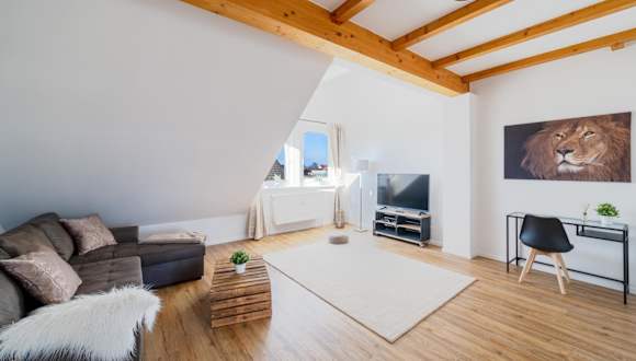 Das Penthouse verfügt über ein Schlafzimmer sowie eine voll ausgestattete Küche mit Kühlschrank und Geschirrspüler. Zudem ist ein Flachbild-TV vorhanden. Der Sitzbereich lädt zum Entspannen ein, und das Badezimmer ist mit einer Dusche ausgestattet. Ein Balkon mit Stadtblick ergänzt das Angebot.