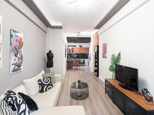 Die Unterkunft umfasst ein Schlafzimmer, ein Wohnzimmer und eine vollständig ausgestattete Küche, die mit einem Kühlschrank sowie einer Kaffeemaschine ausgestattet ist. Das Badezimmer beinhaltet eine Dusche und kostenlose Pflegeprodukte. Handtücher und Bettwäsche werden bereitgestellt.