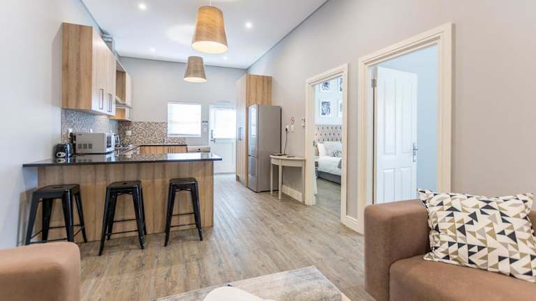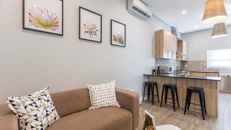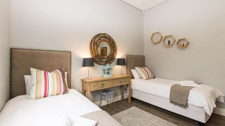 Das Apartment im Suburban Bliss Durbanville bietet Platz für bis zu vier Gäste und verfügt über zwei Schlafzimmer. Die klimatisierten Zimmer sorgen für angenehme Temperaturen, während die gut ausgestattete Küche mit Kühlschrank und Backofen für eine bequeme Selbstversorgung sorgt. Das Badezimmer ist mit einer Dusche und einem Haartrockner ausgestattet. Handtücher und Bettwäsche werden gestellt, um Ihren Aufenthalt noch angenehmer zu gestalten.
