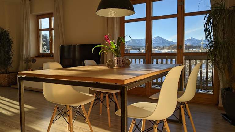 Die Südflügel im Chiemgau ist eine Ferienwohnung mit Garten, Terrasse und Wassersportmöglichkeiten. Sie bietet kostenfreies WLAN und einen Blick auf die Berge sowie kostenlose Parkplätze.