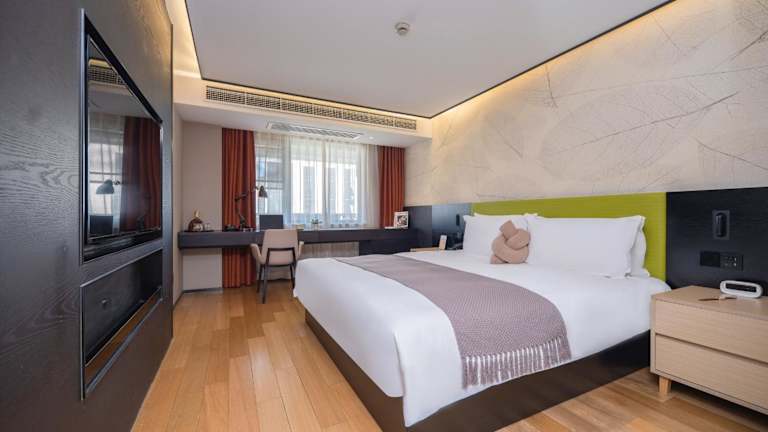 Die klimatisierten Zimmer sind mit einem Schreibtisch, einem Wasserkocher, einem Safe, einem Flachbild-TV sowie einem eigenen Badezimmer mit Dusche ausgestattet. Jedes Zimmer verfügt über einen Kleiderschrank und Schallisolierung. Allergikerfreundliche Zimmer sind ebenfalls verfügbar.
