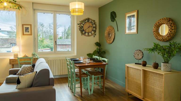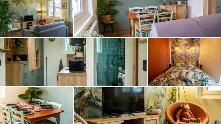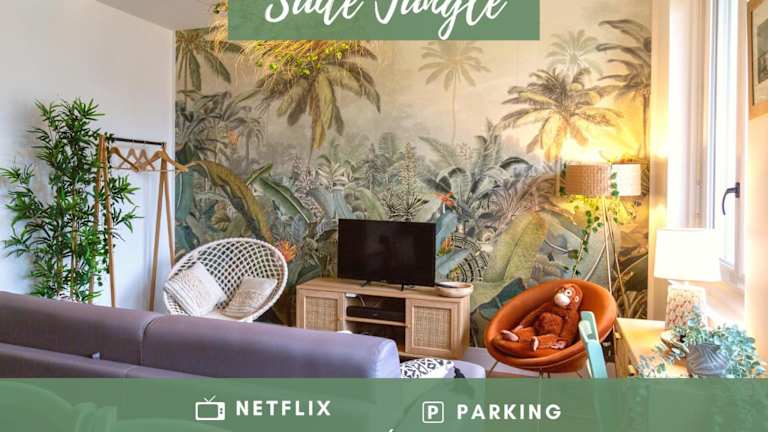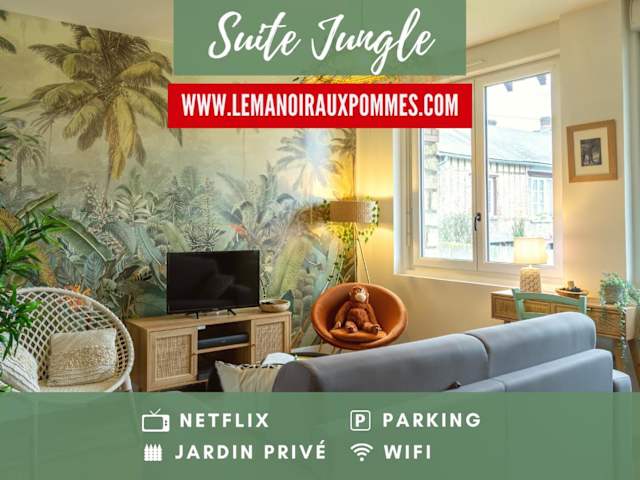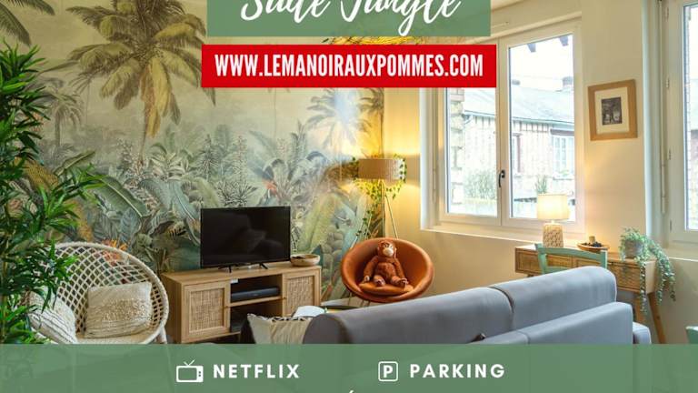 Die SUITE JUNGLE - JARDIN, NETFLIX et PARKING - Le Manoir aux Pommes bietet eine komfortable Unterkunft in einer ruhigen Umgebung, nur wenige Kilometer von bekannten Sehenswürdigkeiten wie der Basilika von Lisieux und dem Safaripark Cerza entfernt. Das Apartment verfügt über kostenfreies WLAN, einen Garten und kostenlose Privatparkplätze. Nutzen Sie die Gelegenheit, die Umgebung beim Wandern, Radfahren oder Tennis zu erkunden. Das Apartment selbst ist gut ausgestattet und verfügt über eine Terrasse mit Blick auf den Garten, ein Schlafzimmer, ein Wohnzimmer, einen Flachbild-TV und eine voll ausgestattete Küche. Handtücher und Bettwäsche werden gestellt und ein Fahrradverleih steht Ihnen ebenfalls zur Verfügung. Der nächste Bahnhof liegt 50 km entfernt und der nächstgelegene Flughafen ist 48 km entfernt.