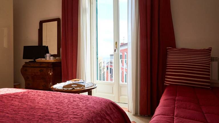 Die klimatisierten Gästezimmer sind ausgestattet mit einem Flachbild-TV mit Satellitenkanälen, einer Kaffeemaschine, einem Laptop, einem CD-Player und kostenlosen Pflegeprodukten. Jedes Zimmer verfügt über ein eigenes Badezimmer mit Bidet und Haartrockner sowie Stadtblick. Zusätzliche Annehmlichkeiten umfassen einen Kleiderschrank und einen Wasserkocher.