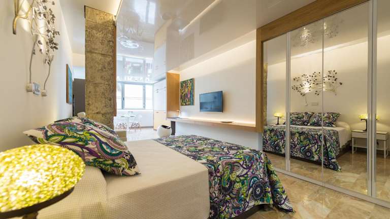 Genießen Sie Ihren Aufenthalt im Hotel Suites Garden Loft Roy Lichtenstein in Las Palmas de Gran Canaria. Dieses klimatisierte Apartment bietet kostenfreies WLAN und eine erstklassige Lage in der Nähe von Sehenswürdigkeiten wie dem Parque de Santa Catalina und dem Einkaufszentrum Centro Comercial El Muelle. Das Apartment verfügt über eine gut ausgestattete Küche, ein komfortables Wohnzimmer mit Smart-Sat-TV und Internet- und Netflixzugang sowie ein modernes Badezimmer mit kostenfreien Pflegeprodukten. Parkplätze stehen Ihnen ebenfalls zur Verfügung. Entdecken Sie die Stadt und die Umgebung und erleben Sie einen unvergesslichen Urlaub auf Gran Canaria.