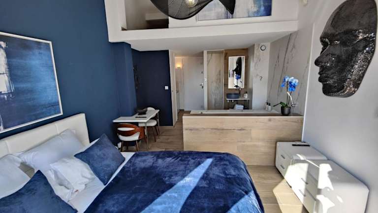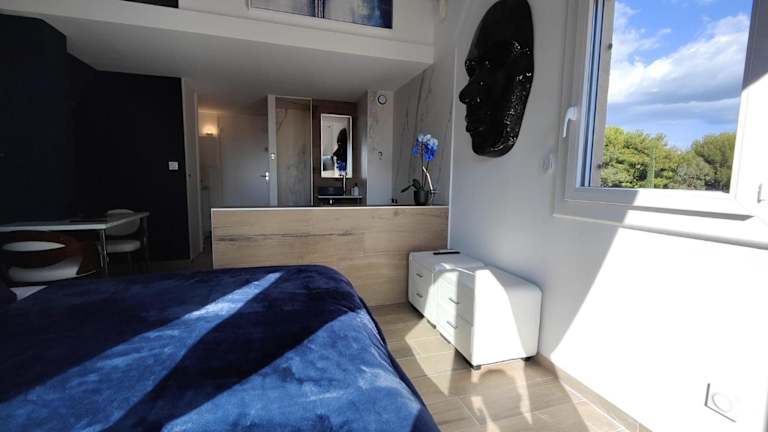 Das Suites JM - Les Pins Marines - Jacuzzi & Vue Mer befindet sich in Bandol und bietet eine günstige Lage in der Nähe von Stränden. Der Strand Capelan ist nur 600 m entfernt und der Strand Engraviers 800 m. Die Umgebung lädt zu Aktivitäten wie Wandern, Tauchen und Angeln ein. Der Strand Barry ist weniger als 1 km entfernt und der Bahnhof Toulon ist in 20 km erreichbar. Der Flughafen Toulon-Hyères liegt etwa 40 km entfernt.