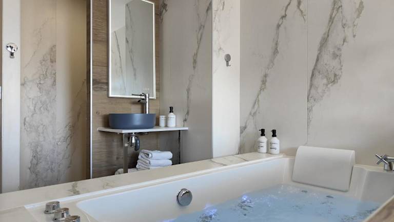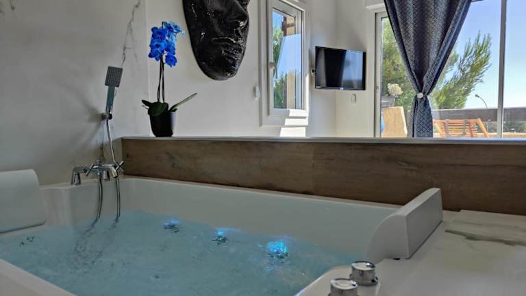 Das Apartment im Suites JM - Les Pins Marines - Jacuzzi & Vue Mer verfügt über 1 Schlafzimmer und eine gut ausgestattete Küchenzeile mit einem Kühlschrank und einer Mikrowelle. Im Badezimmer finden Sie einen Whirlpool und einen Haartrockner. Handtücher und Bettwäsche werden gestellt. Die Unterkunft bietet klimatisierte Zimmer und kostenfreies WLAN.