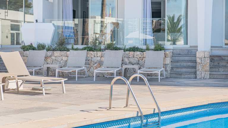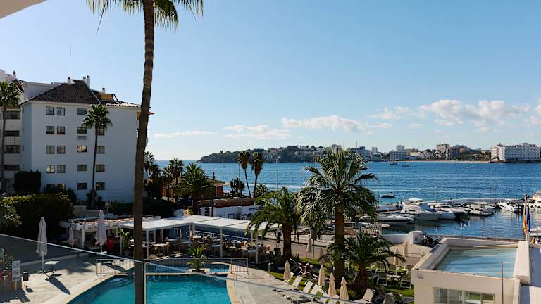 Das Hotel liegt an der Südwestküste Mallorcas, in der Ortschaft Palmanova, innerhalb der Gemeinde Calvià. Direkt am Meer und in erster Linie zum ruhigen Yachthafen gelegen, bietet es direkten Zugang zum Strand Es Carregador, der für seinen goldenen Sand, sein kristallklares Wasser und seine familiäre Atmosphäre bekannt ist. Dank seiner privilegierten Lage können Sie in unserem Hotel die Ruhe von Palmanova genießen, ohne auf die Nähe zu Orten wie Bendinat oder Portals verzichten zu müssen, die nur wenige Autominuten entfernt sind. Es ist der ideale Ausgangspunkt, um den Westen der Insel zu entdecken, mit allen Dienstleistungen und Geschäften nur wenige Schritte entfernt. Nach einer vollständigen Renovierung in den Jahren 2025-26 bietet die Anlage nun elegante Suiten mit 1 oder 2 Schlafzimmern, die komplett mit Küche, Wohnzimmer, Badezimmer und möblierter Terrasse mit Meerblick ausgestattet sind. Unser Komplex ist aufgrund seiner kinderfreundlichen Einrichtungen und der Komfort und Geräumigkeit unserer Apartments perfekt für Familien geeignet. Unsere Räumlichkeiten sind so konzipiert, dass sie Unabhängigkeit, Komfort und Stil vereinen und sich perfekt für Sportler, Gruppen oder Paare eignen, die ein erstklassiges Erlebnis suchen, ohne auf einen Aufenthalt von höchster Qualität zu verzichten.